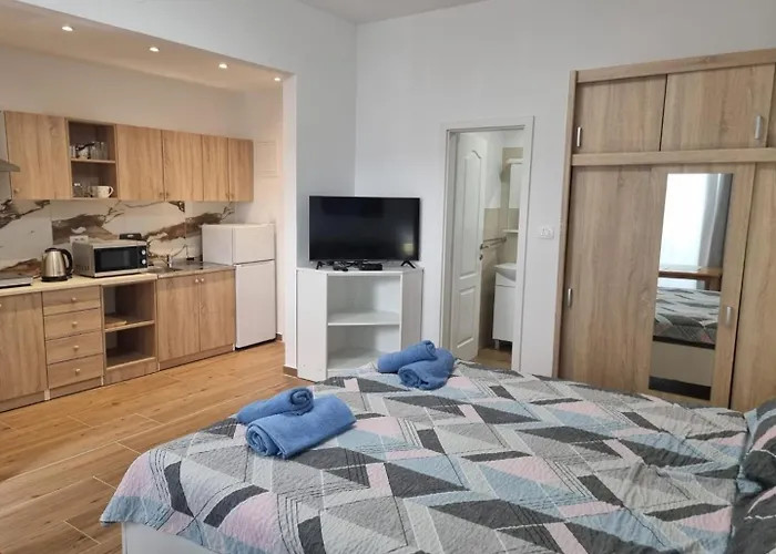 La cucina completamente attrezzata con un bollitore elettrico, un frigo e utensili da cucina, nonché i servizi per la preparazione di tè/caffè, assicurano una migliore esperienza culinaria. La fermata dell'autobus più vicina, Hotel Mediteran, dista 900 metri. Appartamento Studio Raven N2 include anche una terrazza.